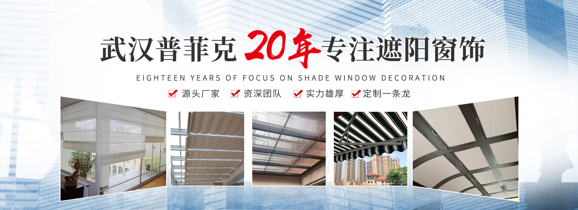 武漢普菲克建材有限公司是一家專業(yè)從事家居窗簾、電動(dòng)窗簾、窗飾及各種工裝類遮陽(yáng)產(chǎn)品研發(fā)、方案集成、安裝售后的供應(yīng)商。 2002年,公司成立于中國(guó)的水陸空交通樞紐——武漢。經(jīng)過(guò)多年的發(fā)展,公司的業(yè)務(wù)范圍... +more